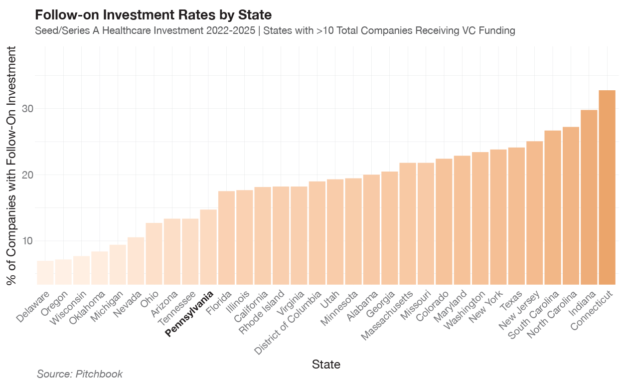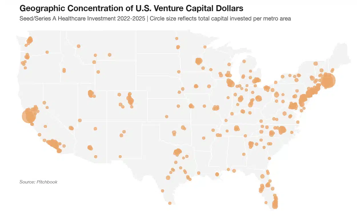 While emerging innovation hubs like Pennsylvania remain underserved.